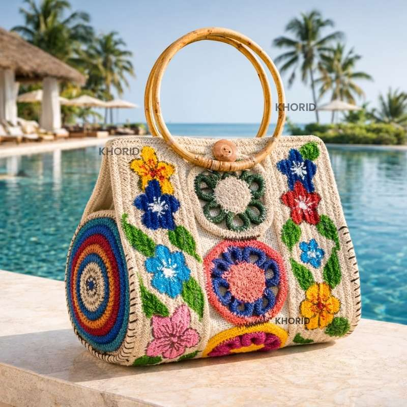 Celebrate color, culture, and craftsmanship with our Boho Bloom Jute Handbag. Expertly handcrafted from premium-quality natural jute, this eco-friendly bag features vibrant floral embroidery that brings a joyful, artistic charm to your look.